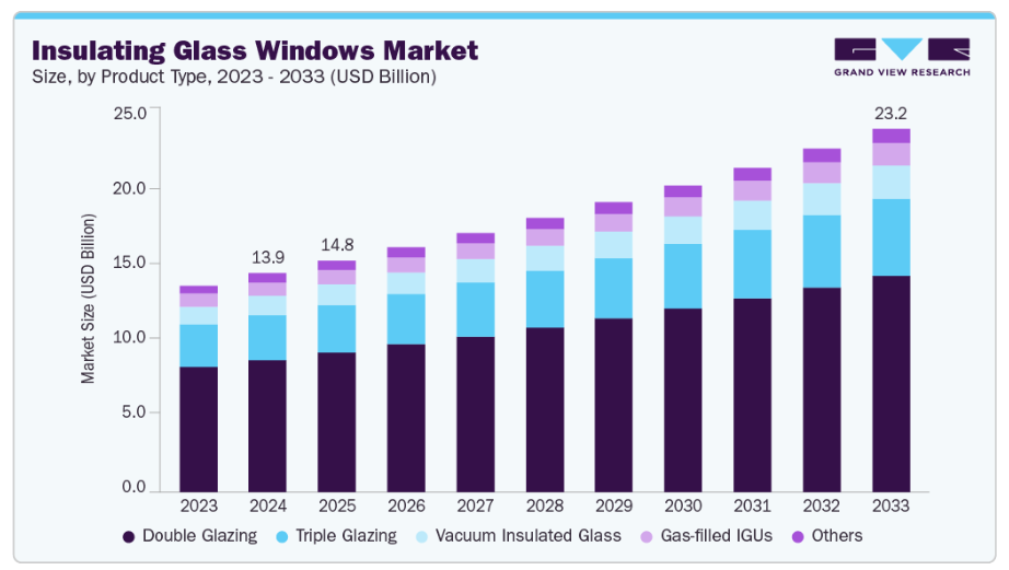 熱損失、騒音低減、気候制御された居住空間への意識の高まりが、より広範な採用を促進しております。都市の拡大と近代的な建築デザインでは、より高い断熱性能を必要とするガラスファサードの使用が増加しております。また、消費者は、美観を損なうことなく電気料金の削減に貢献する窓を求めております。商業施設では、建物所有者がより厳しい省エネ基準を満たしつつ、より健康的な室内環境を創出することを目指しています。改修プロジェクトでは、古い単板ガラス窓を断熱性の高い代替品に置き換える動きが進んでいます。