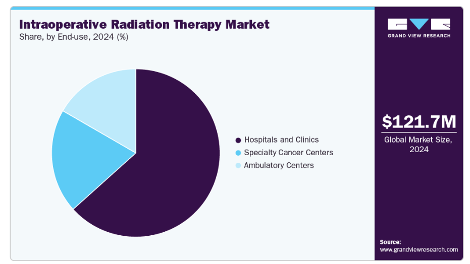 病院・クリニックセグメントは、多角的ながん治療提供における中核的役割から、2024年に63.34%という最大の収益シェアで市場を牽引しました。大規模病院は、IORT装置導入に必要なインフラと外科的専門知識を有している場合が多く、外科腫瘍学プログラムへのIORT統合は治療効率と患者転帰を向上させています。病院は臨床検証と医師研修の主要拠点としても機能し、装置導入を加速させています。高度なシステムによる大量患者対応能力が、その地位を確固たるものにしております。病院が腫瘍学サービスを拡大する中、IORTは手術室内で優先的に採用される技術であり続けております。
