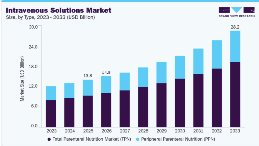 【英語タイトル】Intravenous Solutions Market Size, Share & Trends Analysis Report By Type (TPN, PPN), By Nutrients (Carbohydrates, Vitamins & Minerals, Single-dose Amino Acids), By End Use (Home, Hospitals, Infusion Centers), By Region, And Segment Forecasts, 2026 - 2033