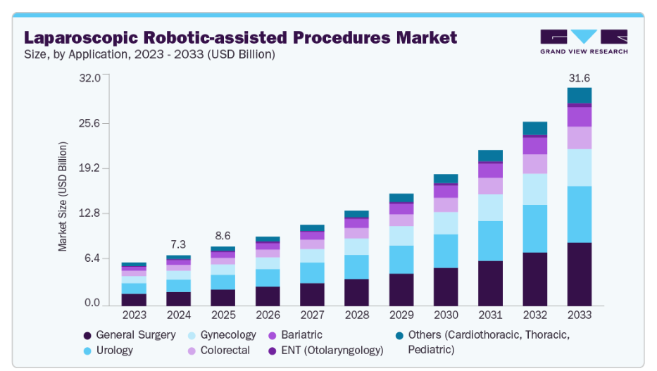 【英語タイトル】Laparoscopic Robotic-assisted Procedures Market Size, Share & Trends Analysis Report By Application (General Surgery, Urology, Gynecology, Bariatric, Colorectal), By Procedure Complexity, By End-use, By Region, And Segment Forecasts, 2025 - 2033