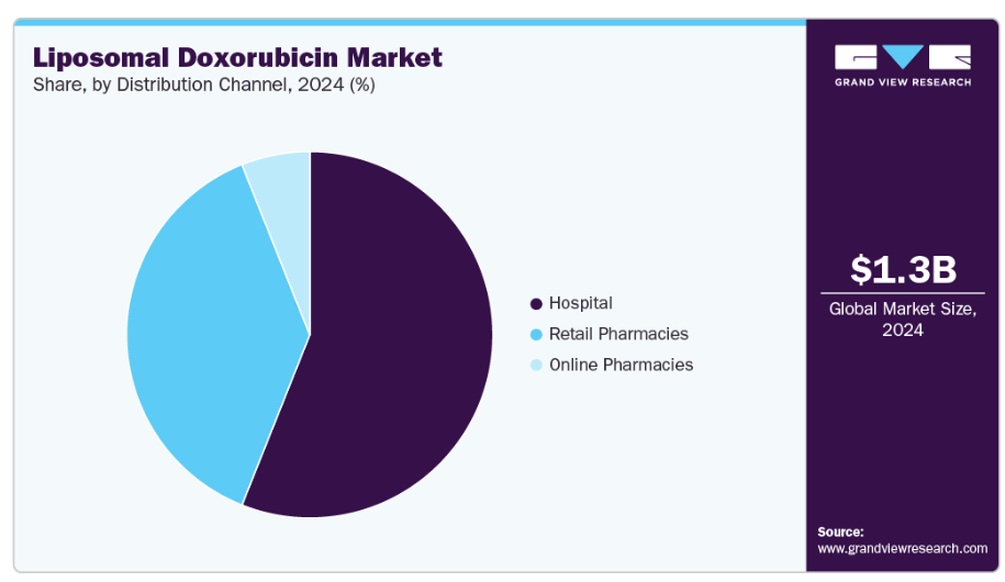多発性骨髄腫セグメントは予測期間中に著しい成長率を示すと予想されます。リポソームドキソルビシンが第一選択治療となる多発性骨髄腫の世界的な罹患率上昇が市場成長を促進しています。例えば、2020年のランセット・ヘマトロジー研究データによれば、特に50歳以上の男性および高所得国において多発性骨髄腫の罹患率が高いことが示されました。