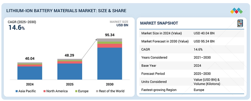 予測期間中、ヨーロッパがリチウムイオン電池材料市場で最も急速に成長する地域となる見込み