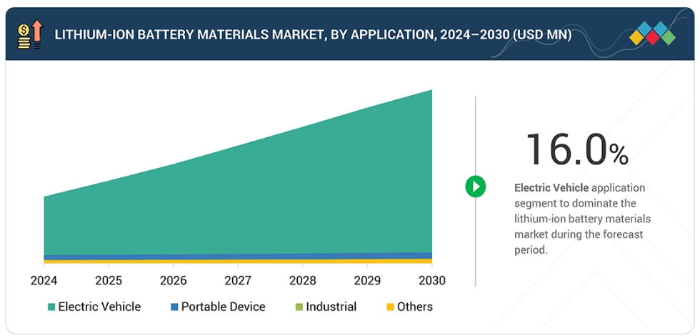 電気自動車(EV)および民生用電子機器製品の需要増加は、リチウムイオン電池の需要拡大につながり、これが直接的にリチウムイオン電池材料への要求を高めています。再生可能エネルギー統合を目的としたエネルギー貯蔵システムの普及は、先進的な電池材料の必要性を増大させています。より優れたエネルギー密度、長寿命、高速充電能力を実現する電池技術の継続的な開発は、自動車、産業用、グリッド規模のアプリケーションにおける材料要件を生み出しています。