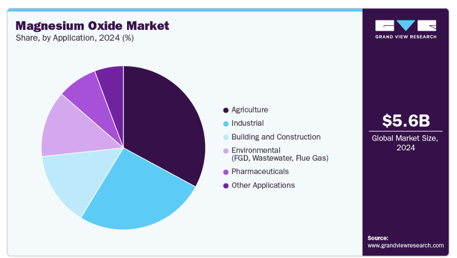 産業セグメントは、予測期間中に6.3%という最も高いCAGRで成長すると見込まれております。これは、MgOのユニークな物理的・化学的特性により、幅広い製造・プロセス産業において不可欠な存在となっているためです。その卓越した熱安定性、塩基性、耐火特性により、鉄鋼、セメント、ガラス、非鉄金属生産といった産業分野で幅広く活用されています。これらの産業では、極度の高温や腐食環境に耐えるため、MgOベースの耐火物やライニングが不可欠です。
