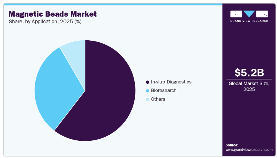 磁気ビーズ市場は、近年の継続的な研究開発に牽引され、大きな成長の可能性を秘めています。磁気ビーズの人気の高まりに加え、遺伝子研究、診断、製薬などの産業における多様な用途が、市場を牽引すると予想されます。