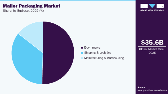 業界は主に電子商取引の急速な拡大に牽引されており、保護性が高く軽量で物流効率に優れた包装形態への需要を継続的に押し上げている。アパレル、電子機器、美容製品、小型消費財におけるオンライン小売量の増加に伴い、ブランドやフルフィルメントセンターはコスト効率の良いラストマイル配送手段としてメーラーへの依存度を高めている。取り扱い容易性、低次元重量料金、自動包装システムとの互換性により、メーラーは高速配送業務における優先ソリューションとしての地位を確立している。