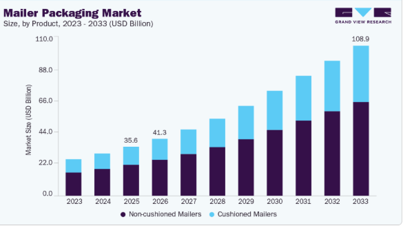 【英語タイトル】Mailer Packaging Market Size, Share & Trends Analysis Report By Material (Plastic, Paper, Foil), By Product (Cushioned, Non-cushioned), By Insulation, By End-use, By Region, And Segment Forecasts, 2026 - 2033