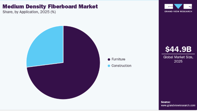 リビングルームや寝室向けのモジュール式家具の需要増加が、予測期間における中密度繊維板(MDF)パネルの需要を牽引すると見込まれます。住宅用・商業用家具、組み立て式(RTA)製品、小型アクセント家具の製造向け製品需要の増加が、予測期間中の市場成長を促進すると見込まれる。