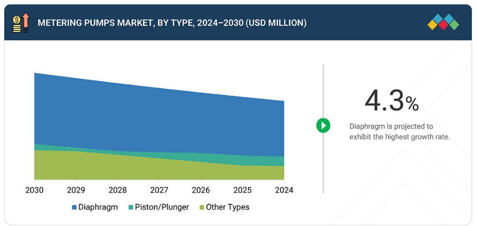 計量ポンプの特性である高精度性や頻繁な監視を必要としない連続運転能力が、水処理や化学プロセス産業をはじめとする様々な産業における計量ポンプの需要を牽引しております。