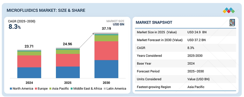 マイクロ流体市場は、医療・研究分野における小型化、自動化、デジタル統合の融合によって再構築されています。病院、学術機関、製薬企業は、迅速な診断、精密な創薬、高度な細胞ベース研究のためにマイクロ流体技術をますます採用しています。これらのシステムは最小限のサンプルと試薬で迅速な結果を可能にし、コスト効率と実験室の持続可能性を向上させます。携帯型およびポイントオブケア検査への移行は、従来型の実験室ワークフローをさらに変革し、臨床判断の迅速化と診断への広範なアクセスを実現しています。これらの進歩は総合的に、研究生産性の向上、治療イノベーションの加速、そしてより連携されたデータ駆動型医療エコシステムの進化を推進しています。