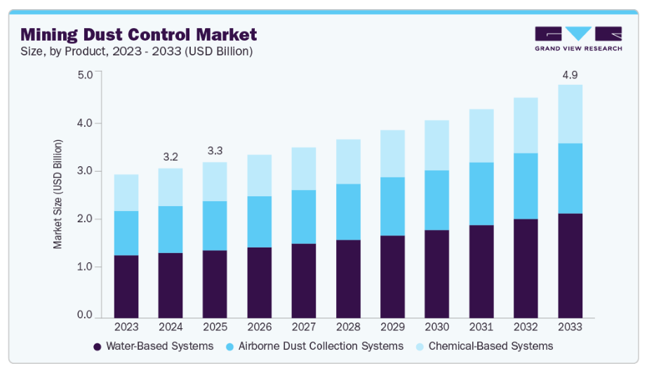 【英語タイトル】Mining Dust Control Market Size, Share & Trends Analysis Report By Product (Water-Based Systems, Chemical-Based Systems, Airborne Dust Collection Systems), By Service Mode (Stationary, Portable), By End-use (Surface Mining, Underground Mining, Mineral Processing), By Region, And Segment Forecasts, 2025 - 2033
