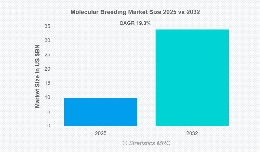 Stratistics MRCの調査によると、世界の分子育種市場は2025年に98億7,000万ドル規模となり、予測期間中に年平均成長率(CAGR)19.3%で成長し、2032年までに339億7,000万ドルに達すると見込まれています。