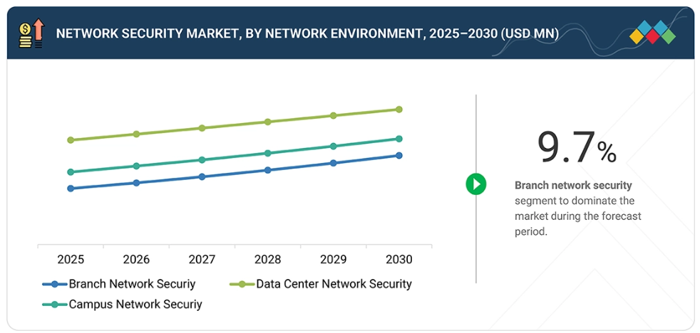 ネットワーク環境別では、データセンターネットワークセキュリティセグメントが市場シェアにおいて主導的地位を占めると見込まれます。