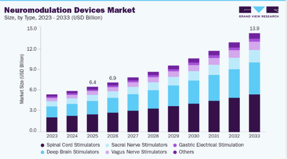 例えば、パーキンソン病財団によると、米国では約100万人がパーキンソン病を患っており、2030年までに120万人に増加すると予測されています。神経疾患の発生率は上昇傾向にあり、神経調節デバイスを含む革新的な治療ソリューションへの需要が高まっている。例えば、2024年2月の世界保健機関(WHO)の報告によると、てんかんの診断を受けた患者は約500万人(人口10万人あたり約49人)に上る。さらに、パーキンソン病、本態性振戦、ジストニア、難治性てんかんなどの疾患は、深部脳刺激(DBS)やその他の埋め込み型神経刺激システムなどの技術によって対処されるケースが増加している。したがって、これらの疾患の有病率の上昇は、高度な神経調節デバイスの需要を大幅に増加させている。