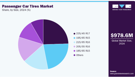 225/45 R17セグメントは2024年に24.5%の最高売上シェアを占めた。セダン、高性能車、プレミアムハッチバックに広く採用されているためである。このサイズは優れたグリップ力、安定性、ハンドリング性能を提供し、快適性と性能の両方を求める消費者の期待に合致している。OEMメーカーは中級から高級車にこのタイヤサイズを頻繁に採用しており、安定した生産量を確保している。欧州とアジアにおけるスポーツセダンや高級セダンの人気が、このサイズの優位性をさらに強固なものにしている。加えて、タイヤメーカーは現代の乗用車に適した高性能コンパウンドや低転がり抵抗設計を導入するなど、このセグメント内での技術革新を継続している。