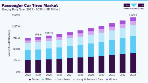 図123 インド乗用車タイヤ市場規模予測(ボディタイプ別、2021-2033年、百万米ドル)