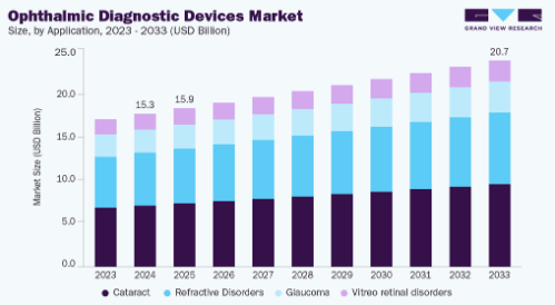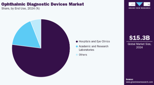 眼科診断装置は、世界規模での眼科医療施設の拡大に伴い市場成長も見せています。病院、診療所、専門眼科センターの増加により、都市部と農村部の住民が高度な診断・治療サービスを利用できるようになっている。例えば米国国立医学図書館は、医療サービスが不足している地域では眼科医療インフラと専門医の拡充が必要だと指摘している。この拡充は、白内障、緑内障、糖尿病網膜症などの眼疾患の早期発見・管理に対する需要に対応するのに役立つ。
