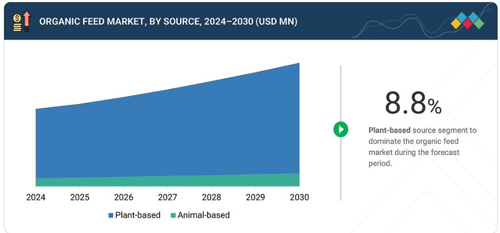 有機製品への需要増加、有機畜産拡大、主要市場プレイヤーによる投資増加により、有機飼料市場はより速いペースで成長すると予想されます。