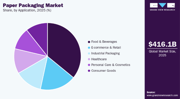 EC・小売分野では、耐久性・軽量性・カーブサイドリサイクル対応を要する包装形態への需要が高まる中、オンラインショッピングの拡大、オムニチャネル流通、ラストマイル配送サービスの継続的成長を背景に、予測期間中のCAGRは6.6%と予測される。段ボール箱、紙製メール便封筒、クッション入りメール便封筒、保護用ラップ、小売用キャリーバッグの採用増加は、持続可能性の向上と顧客体験改善のためにプラスチックから脱却するブランドの動きに伴い、需要を加速させている。再生繊維の統合、デジタル印刷、高強度軽量板紙における技術革新は、急速に変化するEコマースサプライチェーン全体で、紙包装が性能、ブランディング、コスト効率を実現することをさらに可能にしている。