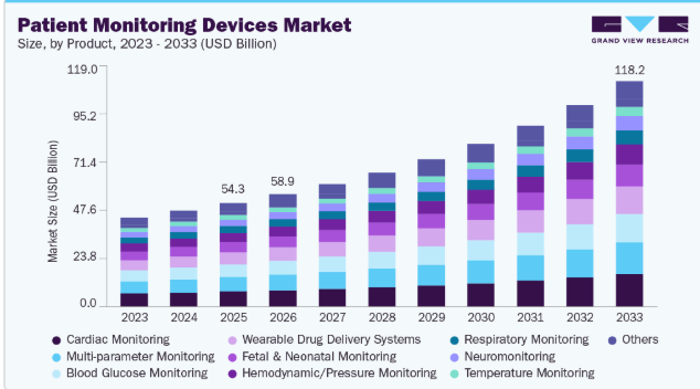 高齢人口の増加、心血管疾患・糖尿病・呼吸器疾患などの慢性疾患の有病率上昇、継続的モニタリングの必要性増大が市場成長を支える主要要因である。例えば世界保健機関(WHO)は、2030年までに世界人口の6人に1人が60歳以上になると推計しており、タイムリーな介入と遠隔医療を可能にする技術への需要を拡大させる。 医療費の圧力と人材不足を背景に、遠隔医療および遠隔患者モニタリングプログラムの導入が拡大している。例えば、AMAデジタルヘルスケア2022調査では、医師の93%がデジタルツールを有益と認識しており、遠隔患者モニタリング(RPM)の利用率は2016年以降30%と倍増以上となった。この導入拡大は、慢性疾患管理、急性期後の回復期ケア、予防医療における接続型モニタリングデバイスに対する臨床医の強い信頼を反映している。