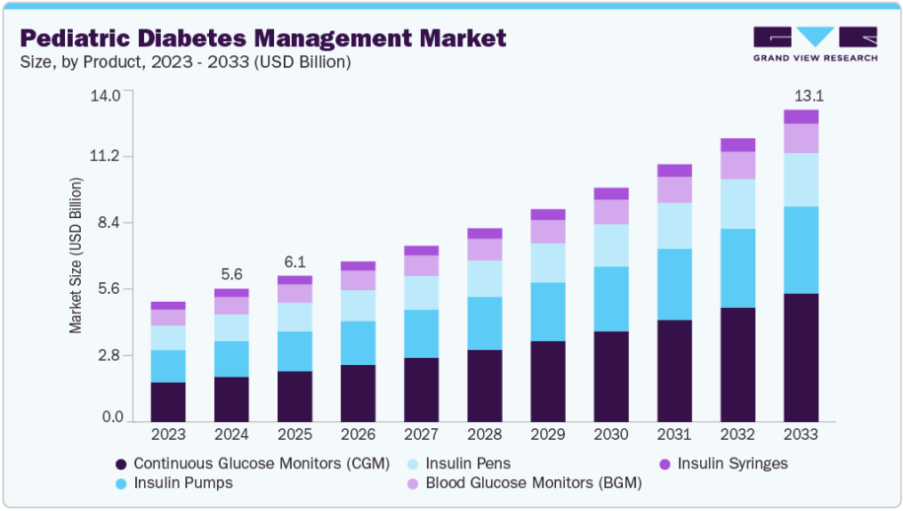 さらに、世界的に医療アクセシビリティの重要性が高まり、小児慢性疾患管理に対する政策支援が強化されていることも市場成長に寄与している。先進国では、高度な血糖モニターやインスリンポンプに対する償還制度や補助制度が小児患者にも拡大されている。さらに、小児糖尿病管理における糖尿病管理機器の有益な役割を強化する公衆衛生キャンペーンや研究が、これらの機器の採用を促進している。例えば、2022年1月に発表されたスタンフォード大学の研究では、1型糖尿病診断後1ヶ月以内に持続血糖モニタリング(CGM)を開始すると、小児の血糖コントロールが大幅に改善されることが判明した。CGM導入前のコホートと比較し、早期導入群は6ヶ月および12ヶ月時点でHbA1c値が低く、目標値<7.5%を達成した割合は43%に対し66%、より厳格な<7%目標達成率は28%に対し53%であった。さらにCGMは、指先穿刺による不快感を軽減し、保護者のストレスを軽減するとともに、電子カルテダッシュボードによる遠隔モニタリングを可能にし、教育と支援を効率的に対象化できる。このエビデンスは、治療成果向上のために早期CGMアクセスと保険適用を優先すべきことを裏付けている。