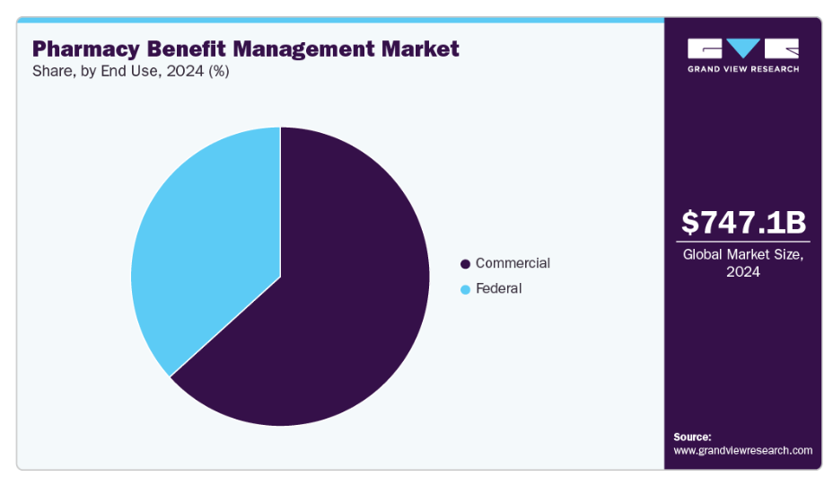 連邦政府セグメントは、医療費抑制、医薬品アクセスの改善、連邦職員および受益者向け処方薬給付の効率的管理を目的とした政府施策により、予測期間中最も高いCAGRで成長すると見込まれます。規制順守、コスト抑制、医薬品価格の透明性への重視が高まる中、連邦機関は請求処理、処方薬リスト管理、利用状況レビューを効率化するPBMサービスの導入を促進しています。連邦セグメントはまた、大規模な契約と予算配分による恩恵を受けており、これによりPBMサービスに対する安定的かつ予測可能な需要が創出されています。
