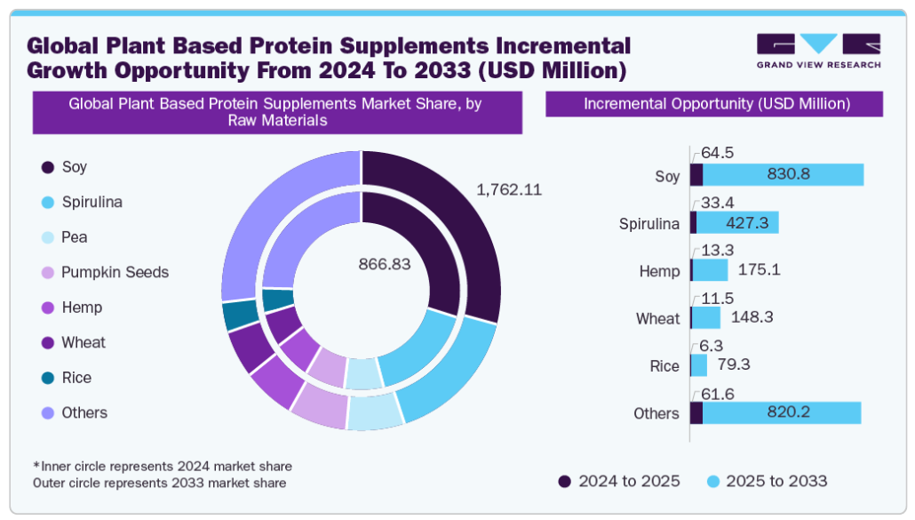 7. 植物性タンパク質サプリメント市場:原材料動向分析(2024年及び2033年、%)