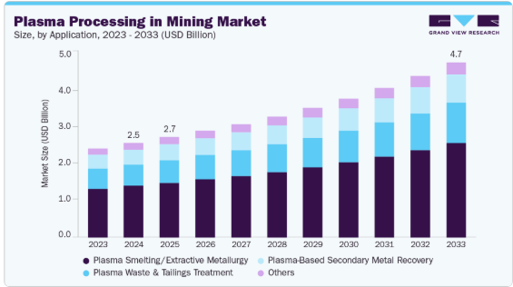 【英語タイトル】Plasma Processing In Mining Market Size, Share & Trends Analysis Report By Application (Plasma Smelting/Extractive Metallurgy, Plasma Waste & Tailings Treatment), By Material (Complex Primary Ores, Secondary Scrap/Residues), By Region, And Segment Forecasts, 2025 - 2033
