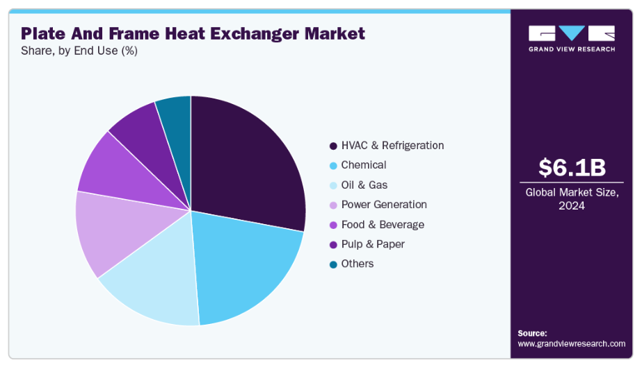 産業分野では、従来のシェルアンドチューブ式熱交換器と比較してコンパクトな設計、高い熱伝達効率、低いメンテナンスコストを理由に、これらのシステムの採用が拡大しています。もう一つの主要な推進要因は、再生可能エネルギーや廃水処理アプリケーションにおけるプレートアンドフレーム式熱交換器の利用増加です。持続可能な技術への注目の高まりと、グリーンエネルギーを支援する政府規制が相まって、地熱、バイオマス、地域暖房システムにおけるこれらの熱交換器の利用を促進しています。