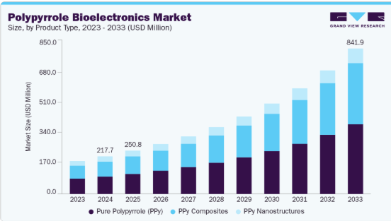 【英語タイトル】Polypyrrole Bioelectronics Market Size, Share & Trends Analysis Report By Product (Pure Polypyrrole (PPy), PPy Composites, PPy Nanostructures), By Application (Electrochemical & Enzymatic Biosensors, Neural interfaces & Implantable Electrodes, Wearable Bioelectrodes & Epidermal Sensors, Tissue Engineering), By Region, And Segment Forecasts, 2025 - 2033
