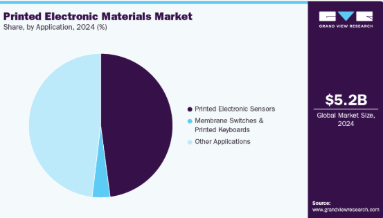 2024年時点で、印刷電子センサーセグメントが47.9%の最大収益シェアを占め、医療、自動車、産業アプリケーションにおける広範な採用を反映しています。低消費電力、柔軟性、コスト効率の高さから、ウェアラブル機器、環境モニタリング、スマートパッケージングに最適です。印刷バイオセンサーと圧力センサーの継続的な進歩により、検出精度と応答性が向上しています。センサーのIoTネットワークへの統合が進むことで、印刷エレクトロニクス分野におけるその優位性がさらに強化されている。