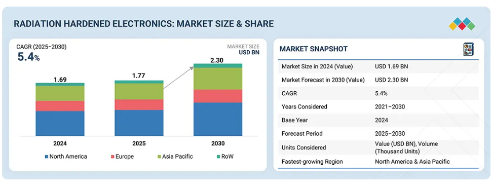 予測期間中、アジア太平洋地域は世界の放射線耐性電子市場において最も急速に成長する地域となる見込みです。