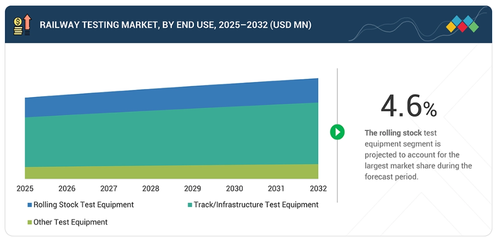 最終用途別では、予測期間中に鉄道車両試験装置セグメントが鉄道試験市場を牽引すると見込まれます。2025年の20億4680万米ドルから2032年までに27億8800万米ドルへ成長すると予測されています。