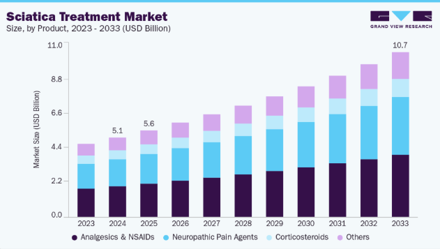 この成長は、坐骨神経痛の世界的な有病率の上昇、高齢化、治療法の進歩など、いくつかの主要な要因に起因しています。