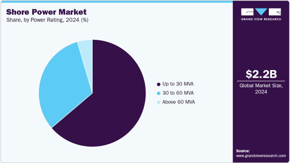 2024年には30MVA以下のセグメントが世界市場を支配した。この傾向は、国際海運における超大型船の支配力増大と一致している。これらの大型船舶は小型船に比べて大幅に多くの電力を必要とするため、より強力な陸上電源設備が求められる。30MVA以下のシステムは、規制順守とコスト削減のバランスを図る港湾・船舶運航事業者にとって、信頼性が高く拡張性のあるソリューションを提供する。これは現代の海事物流、大型船舶、厳格化する環境政策、港湾脱炭素化に向けた世界的推進といった現在および将来のニーズに合致している。