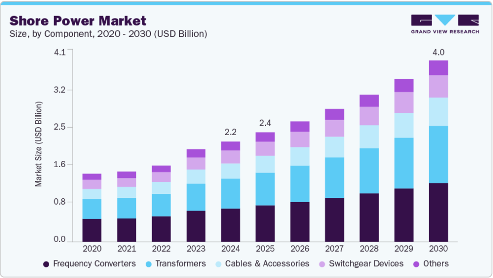 変圧器セグメントは予測期間において最も急速な成長が見込まれる。陸上電力システムにおいて重要な役割を担い、陸上グリッドからの入力電力の電圧レベルを、接岸船舶の特定の電圧要件に適合させる調整を行う。これにより陸上と船舶間の安全かつ効率的な電力伝送が確保される。