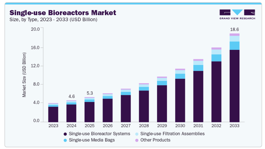 2025年から2033年にかけて年平均成長率(CAGR)17.12%で成長する見込みです。シングルユースシステムは、医薬品および哺乳類細胞培養アプリケーションにおける重要な技術として台頭しています。