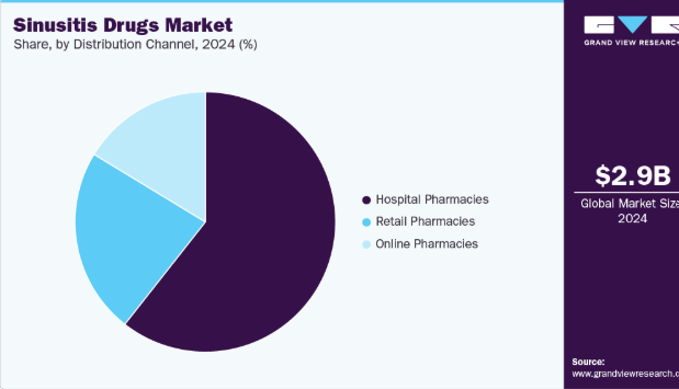 2024年、副鼻腔炎治療薬市場において病院薬局セグメントが最大のシェアを占めた。これは重症または複雑な症例の患者に対し処方薬を直接提供できるためである。特に急性および慢性副鼻腔炎において、高い患者数が安定した需要を牽引している。病院薬局は、複雑な副鼻腔炎症例の治療に不可欠な生物学的製剤や併用療法を含む、様々な先進的治療オプションを提供する体制が整っている。