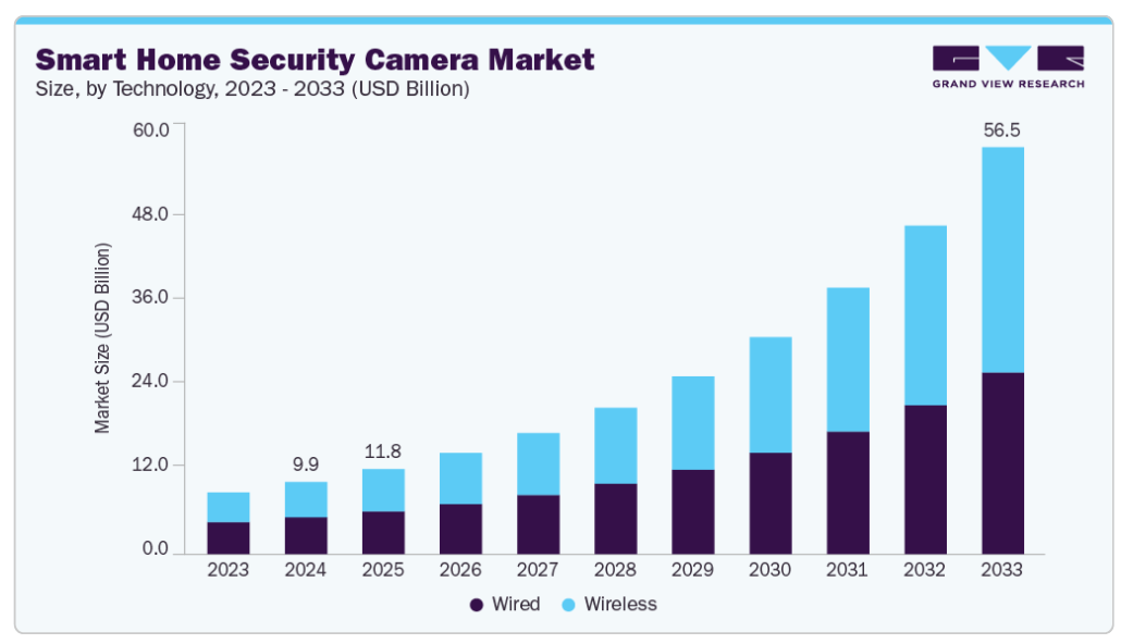【英語タイトル】Smart Home Security Camera Market Size, Share & Trends Analysis Report By Technology (Wired, Wireless), By Application (Doorbell Camera, Indoor Camera, Outdoor Camera), By Region, And Segment Forecasts, 2025 - 2033