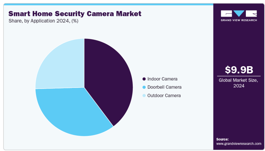• スマートホームセキュリティカメラ市場において、スマート屋内カメラは2024年に39.8%の収益シェアを占めました。