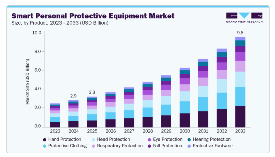 【英語タイトル】Smart Personal Protective Equipment Market Size, Share & Trends Analysis Report By Product (Hand Protection, Protective Clothing, Head Protection), By End Use (Construction, Manufacturing, Transportation), By Region, And Segment Forecasts, 2025 - 2033