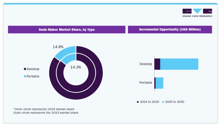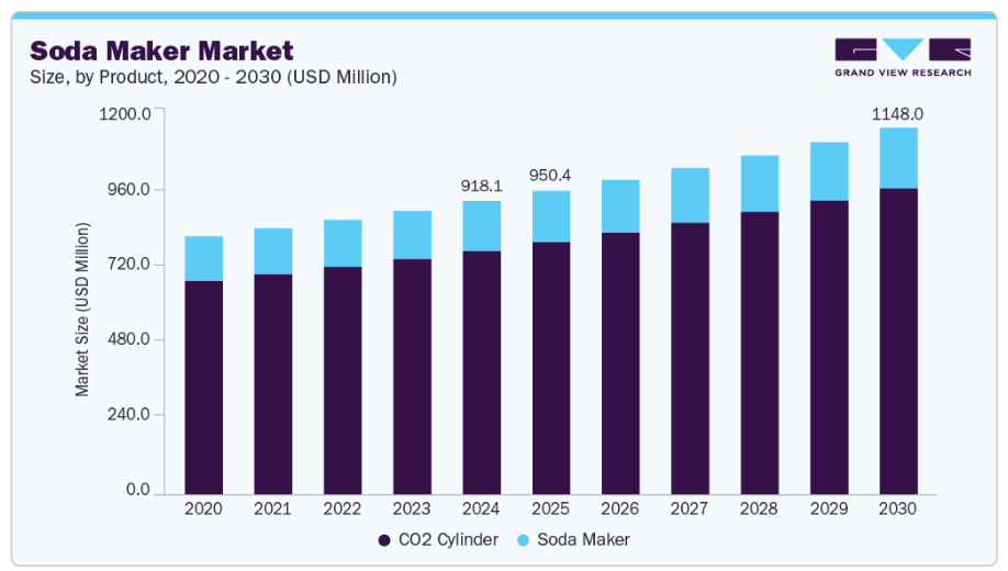 ソーダメーカーの人気は、利便性、カスタマイズ性、市販ソーダに伴うプラスチック廃棄物の削減が可能であることから高まっています。消費者は、炭酸レベルを調整したり、フレーバーを選んだり、自宅でスパークリングウォーターやソーダを作れる点にますます魅力を感じており、健康志向かつエコフレンドリーなライフスタイルへの傾向と合致しています。市場成長はさらに、可処分所得の増加、家庭での飲料消費の拡大、ユーザー体験と利便性を高めるスマートで携帯可能なソーダメーカーの技術進歩によって支えられています。