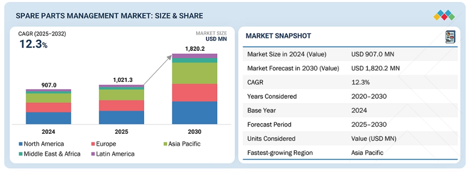 アジア太平洋地域は、産業のデジタル化、製造拠点の拡大、リアルタイムでの部品可視性に対する需要の高まりを背景に、スペアパーツ管理市場において最も急速に成長する地域として浮上すると予想されます。インド、インドネシア、マレーシア、ベトナムでは、クラウドベースの在庫管理、予知保全、自動化された流通が導入されています。
