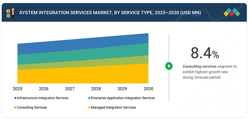 デジタル化の進展と複雑化するIT環境は、組織にシームレスな運用確保の圧力を生み出しています。ハイブリッドクラウドプラットフォーム、API管理、自動化されたワークフローによって支えられるシステム統合サービスは、企業がプロセスを合理化し、エラーを削減し、データフローを改善するのに役立ちます。近代化、セキュリティ、スケーラブルなアーキテクチャへの投資は、効率性、俊敏性、事業成長に直接影響を与え、統合サービスプロバイダーへの需要を促進しています。