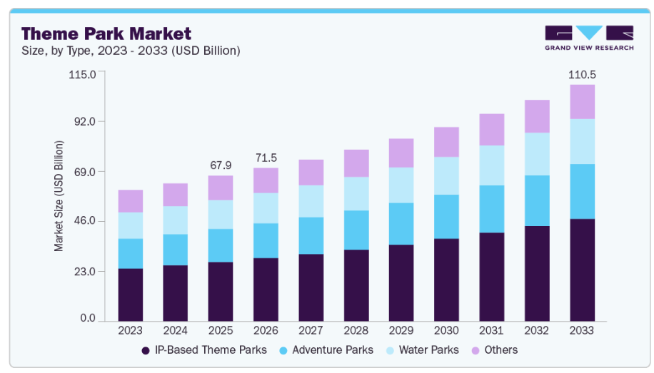 消費者が没入型で体験重視のレジャー活動をますます重視する中、テーマパークでの休暇は引き続き強い勢いを増しており、特に米国のアミューズメントおよびテーマパーク産業において顕著です。可処分所得の増加、家族中心の旅行トレンド、そして目的地型エンターテインメントの魅力の高まりが、大規模なアトラクションや統合型リゾート施設への持続的な需要を牽引しています。さらに、テーマパーク設計の進歩により、ストーリーテリング、先進的なアトラクション技術、インタラクティブな環境、そして持続可能なインフラの統合を通じて、来場者の体験が再構築されています。運営会社は、自社の提供サービスを差別化し、来場者の滞在時間を延長し、リピート訪問を促進するために、革新的なテーマパーク設計への投資をますます増やしています。