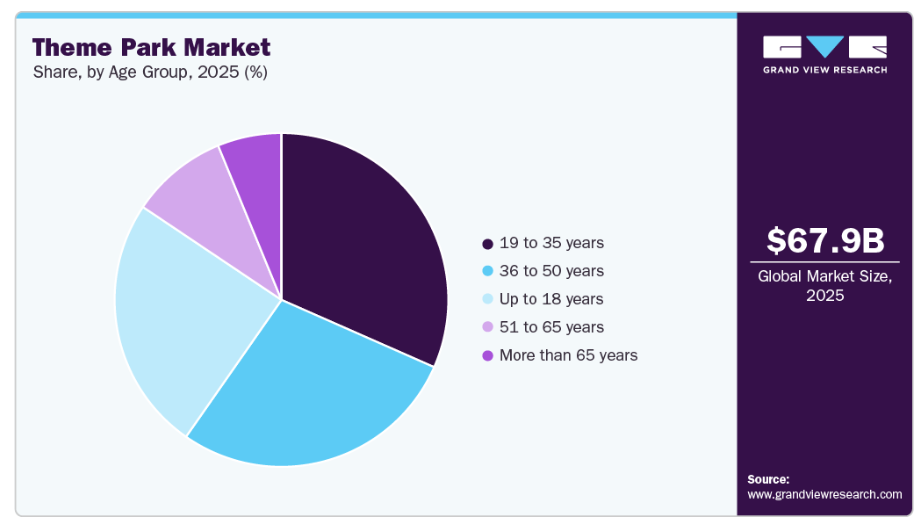 2025年には、36歳から50歳の層が市場を牽引し、最大の売上シェアを占めました。36歳から50歳の個人は、学齢期や10代の子供を持つ親世代に属することが多く、家族旅行の計画における主要な意思決定者となっています。テーマパークは、家族にとって安全で、秩序があり、娯楽性の高い環境として、この年齢層に強くアピールしています。さらに、親、子供、祖父母が一緒に旅行する多世代旅行の増加に伴い、多様な年齢層に対応した包括的なパークの提供が重要性を増しています。この層は特に、スリル満点の乗り物、家族向けのアトラクション、レジャーゾーンがバランスよく組み合わされたパークに惹かれています