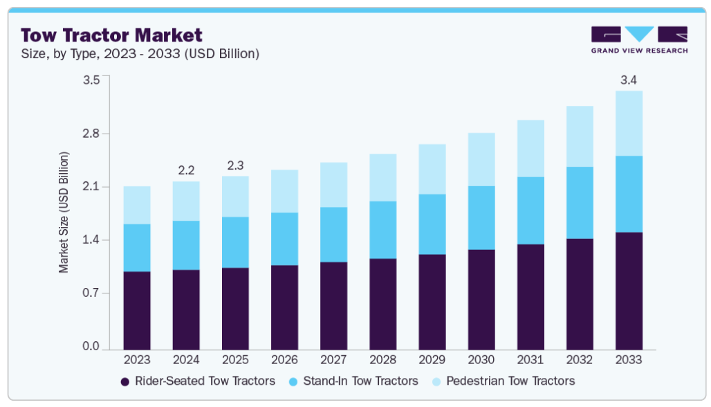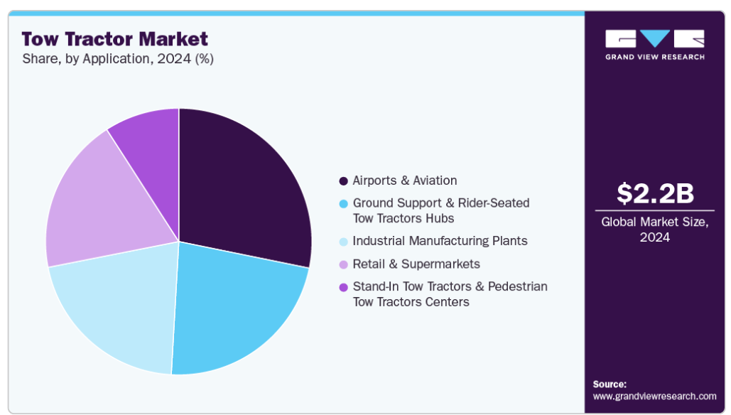 2024年には空港・航空セグメントが最大のシェアを占めました。これは、航空旅客数の増加に伴う手荷物取扱量の拡大、航空貨物輸送の増加、地上支援機器の近代化への投資拡大、そして空港の持続可能性目標達成に向けた効率的で低排出の牽引ソリューションの必要性によって牽引されたものです。この分野における牽引トラクターは、手荷物カート輸送、貨物台車牽引、ターミナルや駐機場間での地上支援機器の移動など、幅広い業務で活用されています。