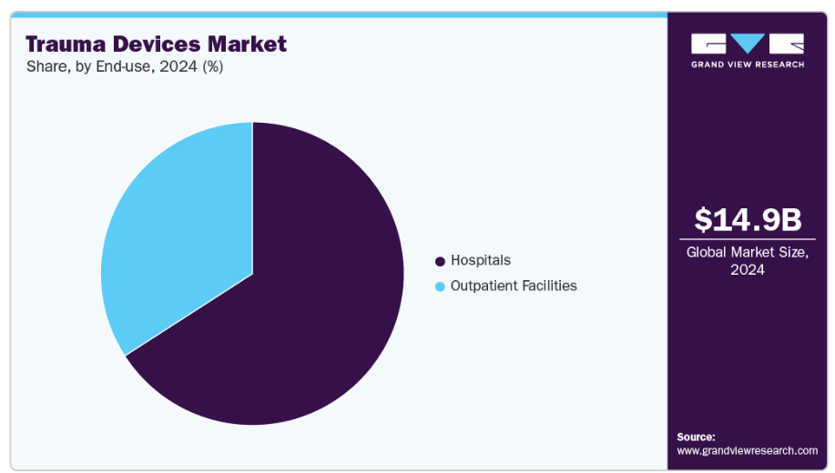 2024年、病院セグメントが市場を支配し、収益シェアは65.89%を占めました。病院は高度な外傷治療の主要拠点として台頭しており、複雑な損傷を管理するため、最先端のデバイスやハイブリッド固定技術を積極的に採用しています。この分野における重要な傾向は、多角的固定アプローチです。これは、困難な症例において骨折を安定化させ、感染リスクを低減し、機能回復を改善するために、内部固定装置と外部固定装置を組み合わせるものです。2024年2月にBioMed Central Ltdが発表した論文によれば、足関節周囲骨折後に重篤な術後感染症を発症した32名の患者を対象とした回顧的分析が行われました。治療には片側外固定器と骨延長術、脛踵関節固定術の併用が採用されました。この戦略により足関節の安定性が確保され、感染の排除と脛踵関節の可動性維持が実現しました。広範な組織損傷や高い感染リスクが存在するケースにおいても、この複合療法により患者様の満足のいく治癒と機能回復が達成されました。