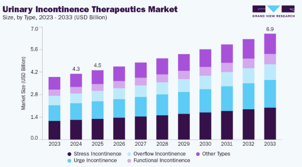 - タイプ別では、2024年にストレス性尿失禁セグメントが30.05%の最大シェアを占めた。