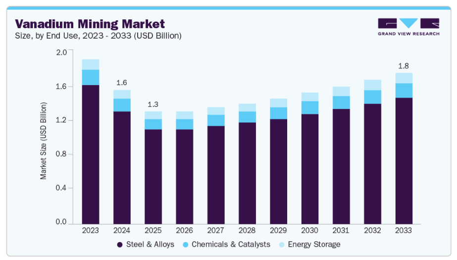 【英語タイトル】Vanadium Mining Market Size, Share & Trends Analysis Report, By End Use (Steel & Alloys, Energy Storage, Chemicals & Catalysts), By Region (North America, Europe, Asia Pacific, Latin America, MEA), And Segment Forecasts, 2025 - 2033
